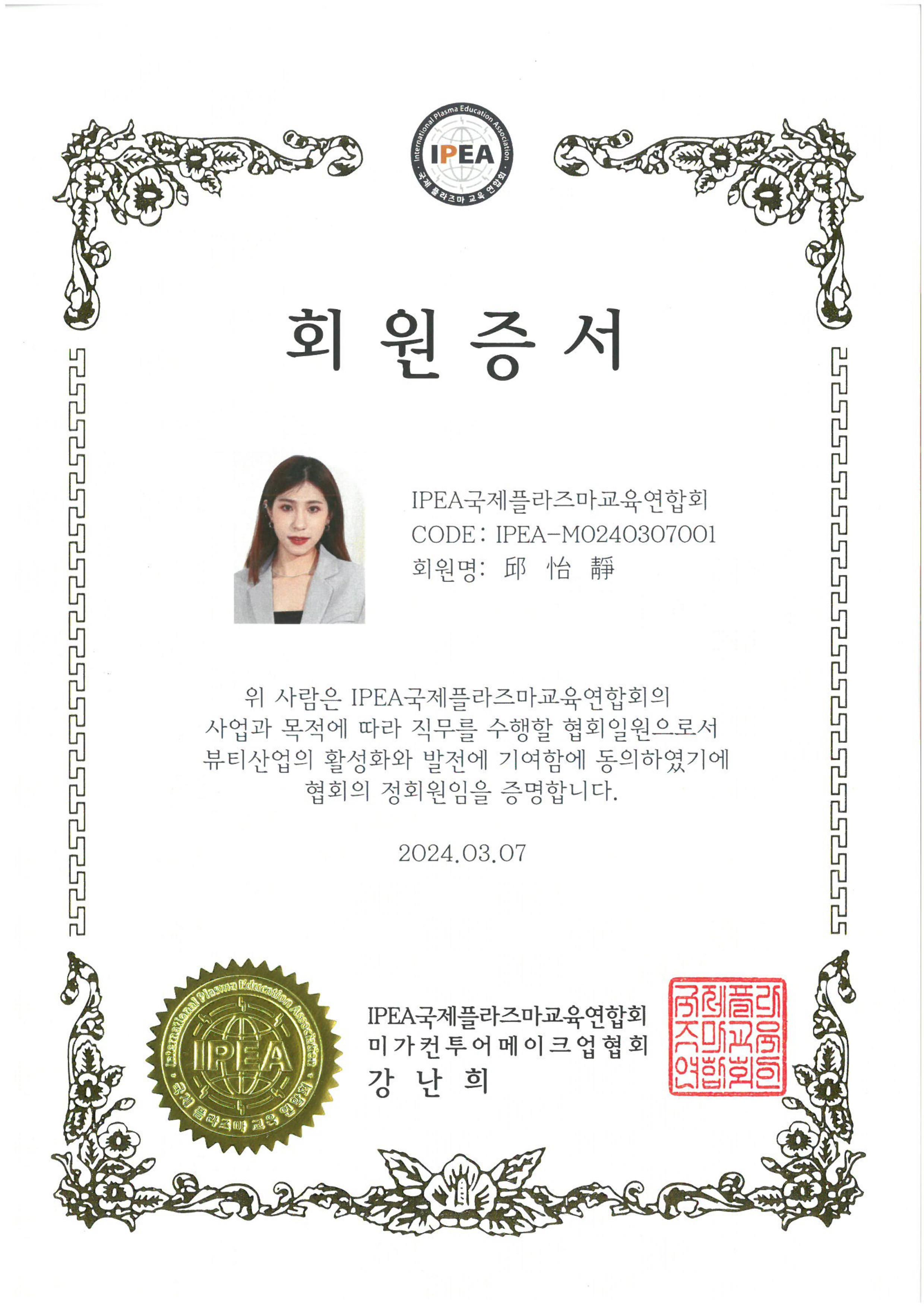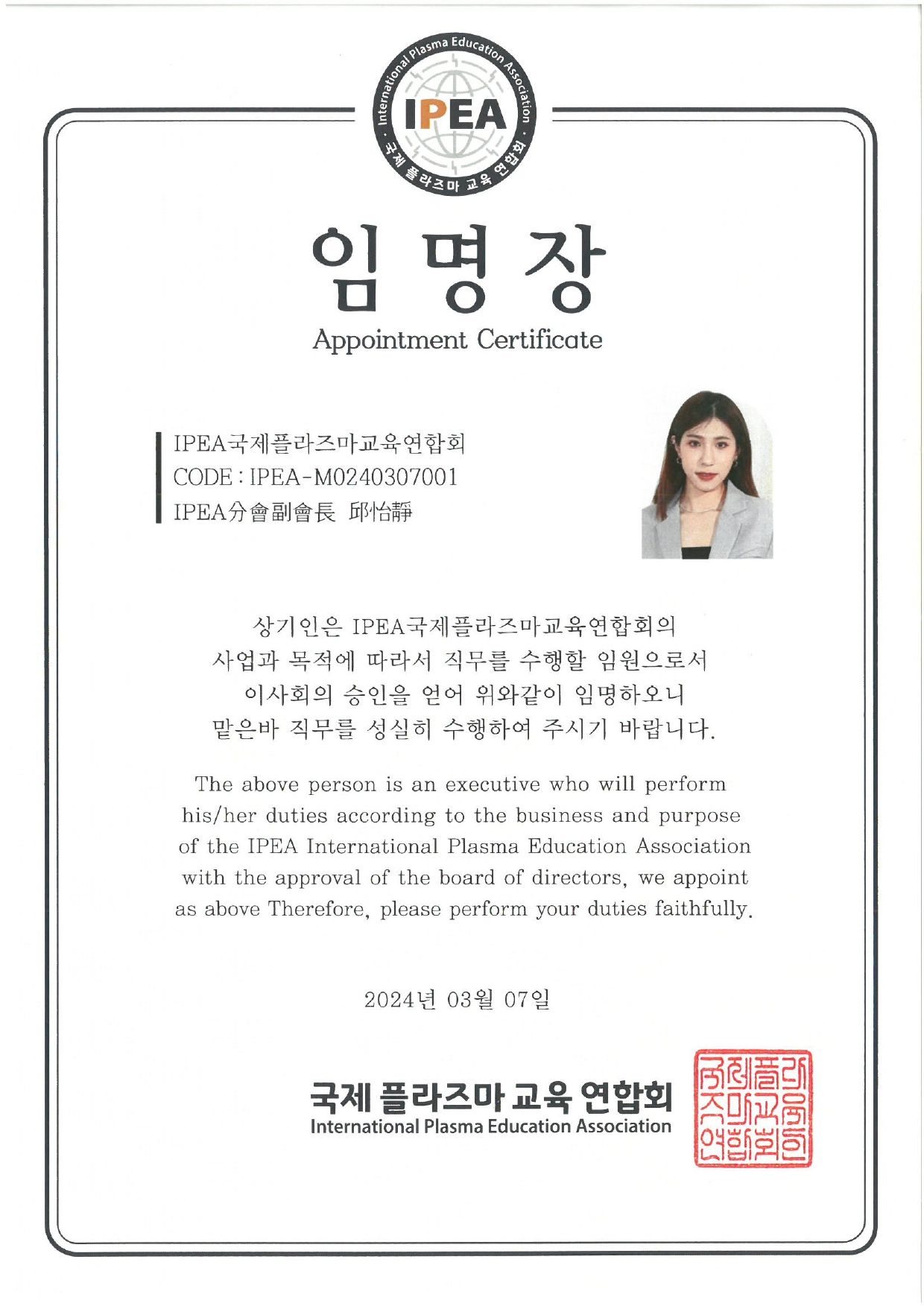 IPEA副會長|韓國正規IPEA證書|機構核發許可證書