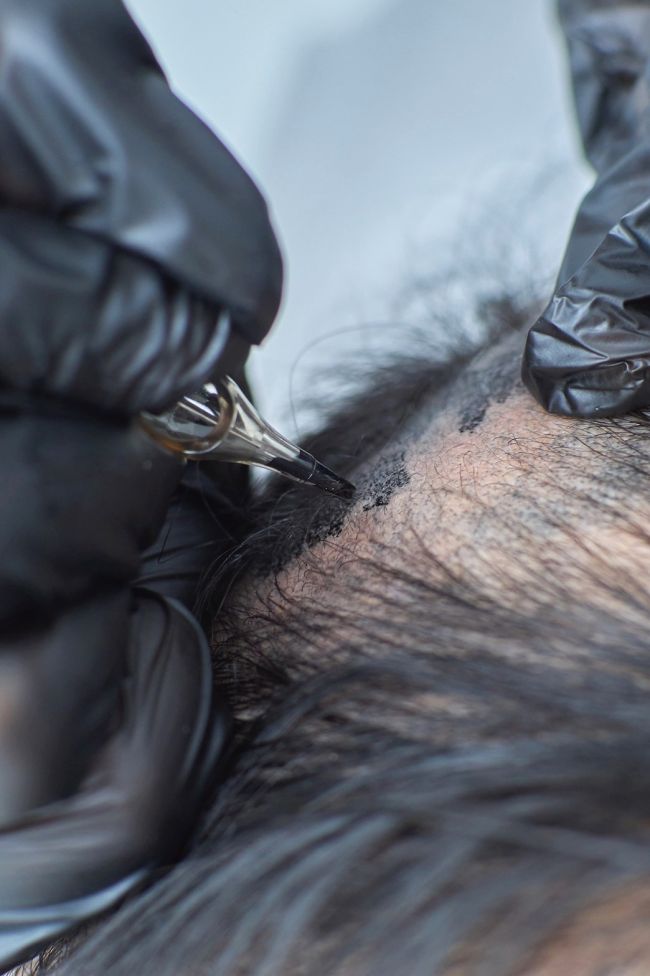 除了避開操作前後一週頭皮適應期,紋髮後仍然可以進行染燙髮,紋髮的毛囊點能夠自然融合於不同髮色。