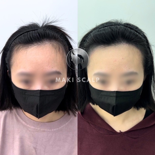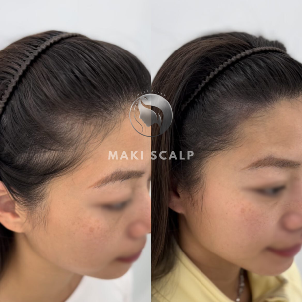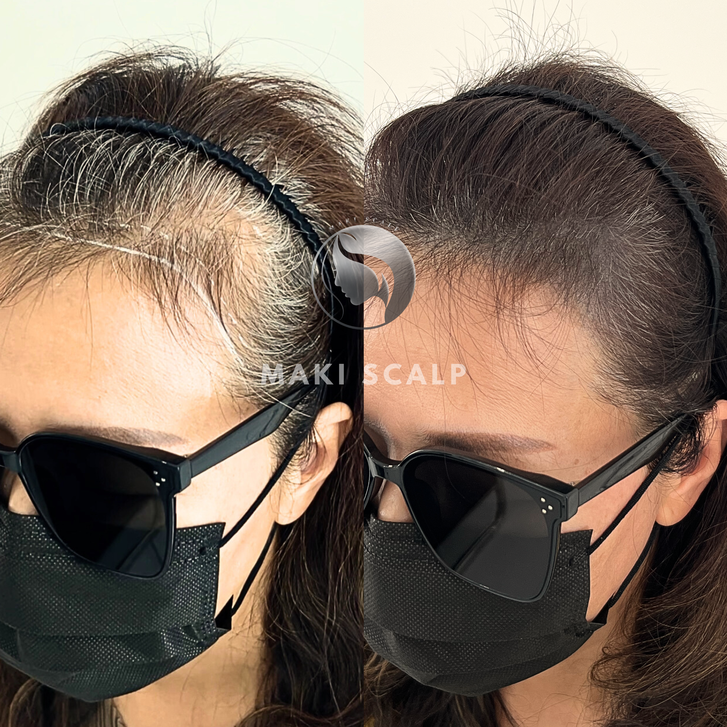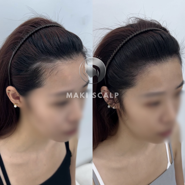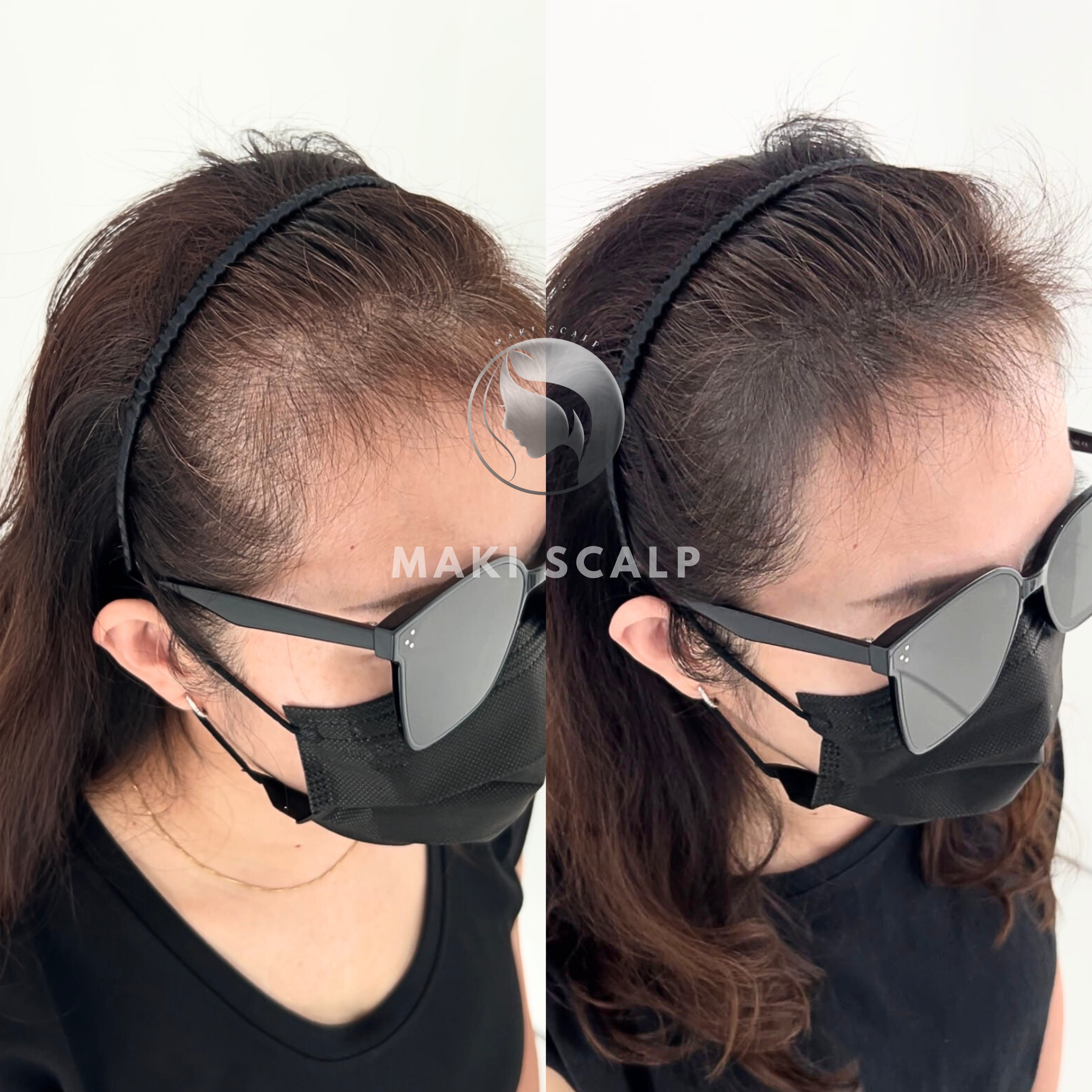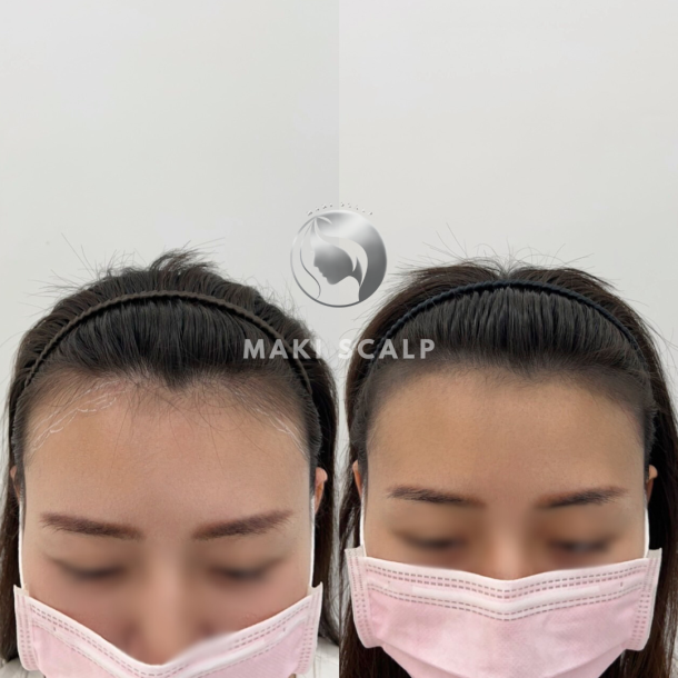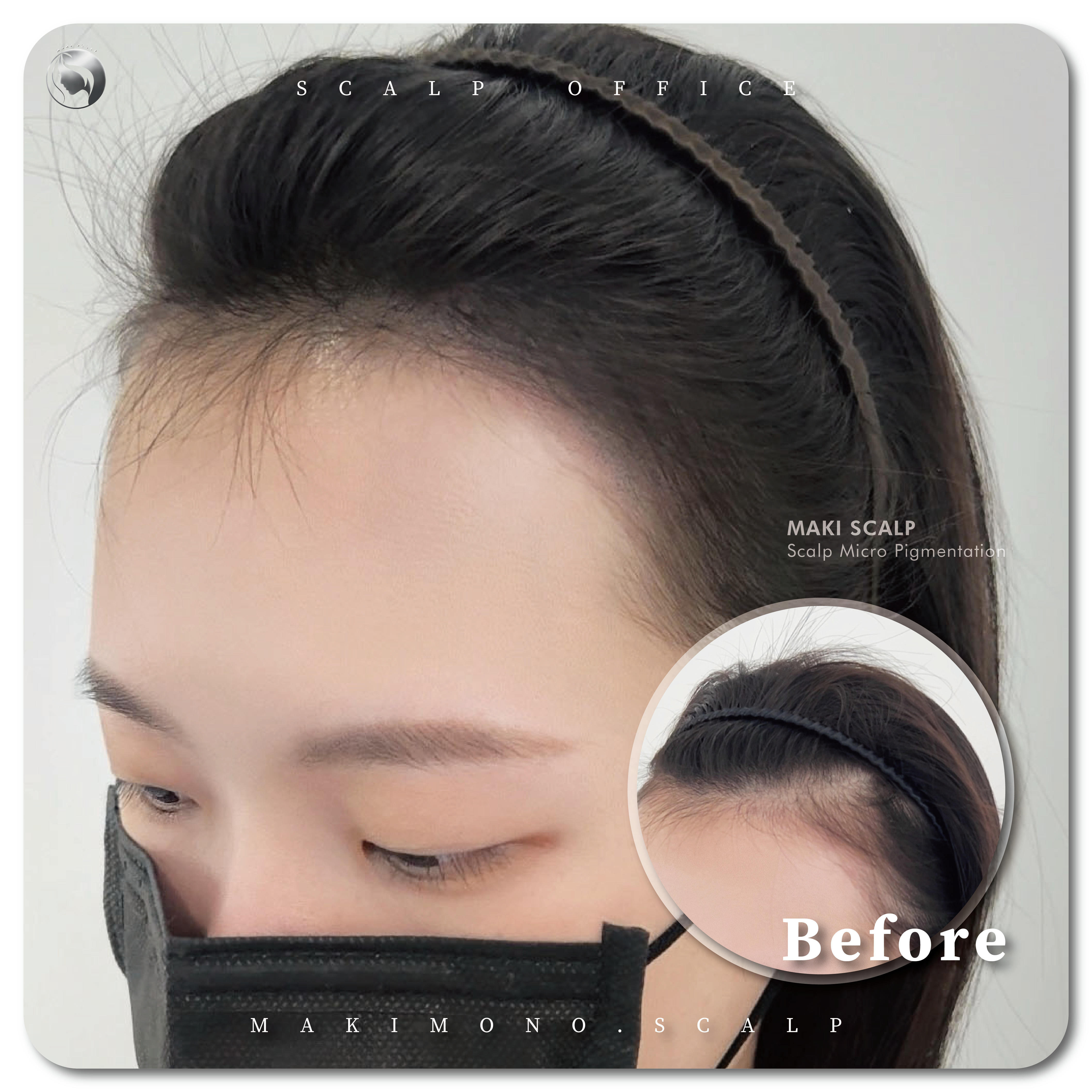 髮際線自然填補 清透柔霧感年僅二十初歲的T小姐,卻有髮際線空洞問題!從事婚紗業的她,經常需要綁起馬尾接待客戶。透過填密技術改善長久以來的困擾,現在可以駕馭任何髮型,再無死角。