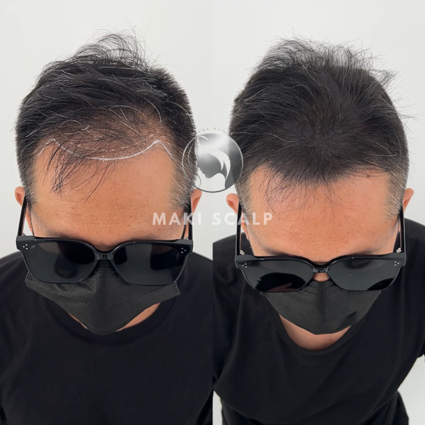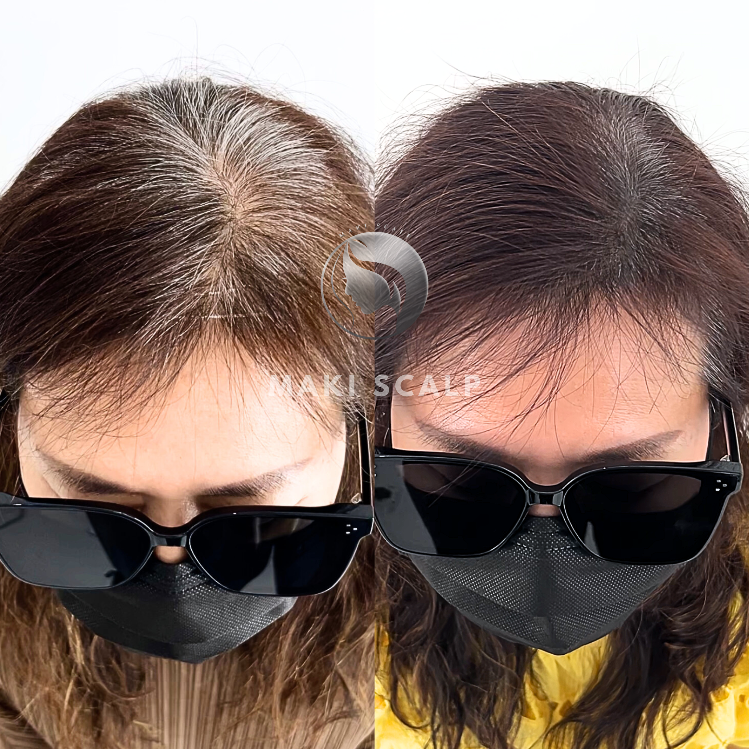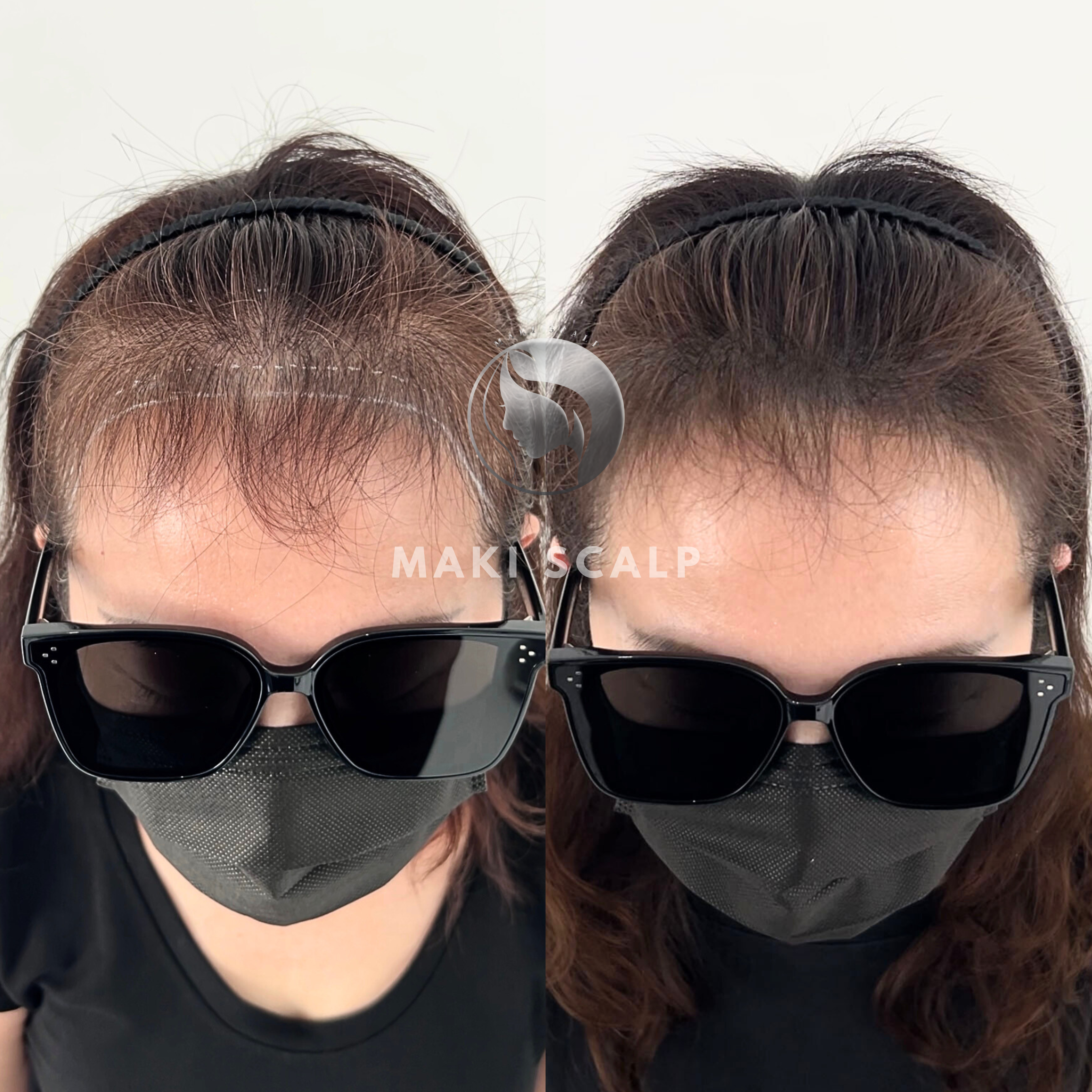 有效改善局部頭皮露白空姐的夢幻髮型,怎麼能有一絲不完美?即便擁有豐沛髮量,對於前額明顯露白處,依然感到不滿意。蒔物所針對Z小姐的需求,設計出專屬客製化填補,打造出自然漸層延伸髮際線,近看也不露出任何破綻!