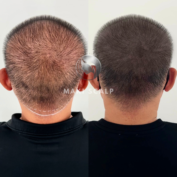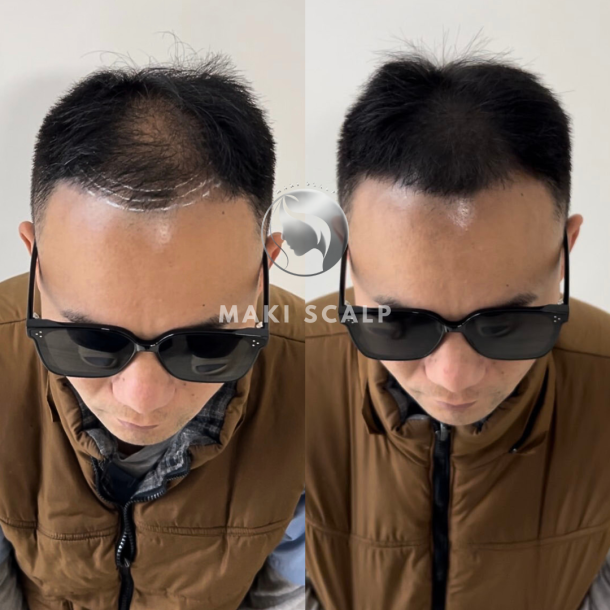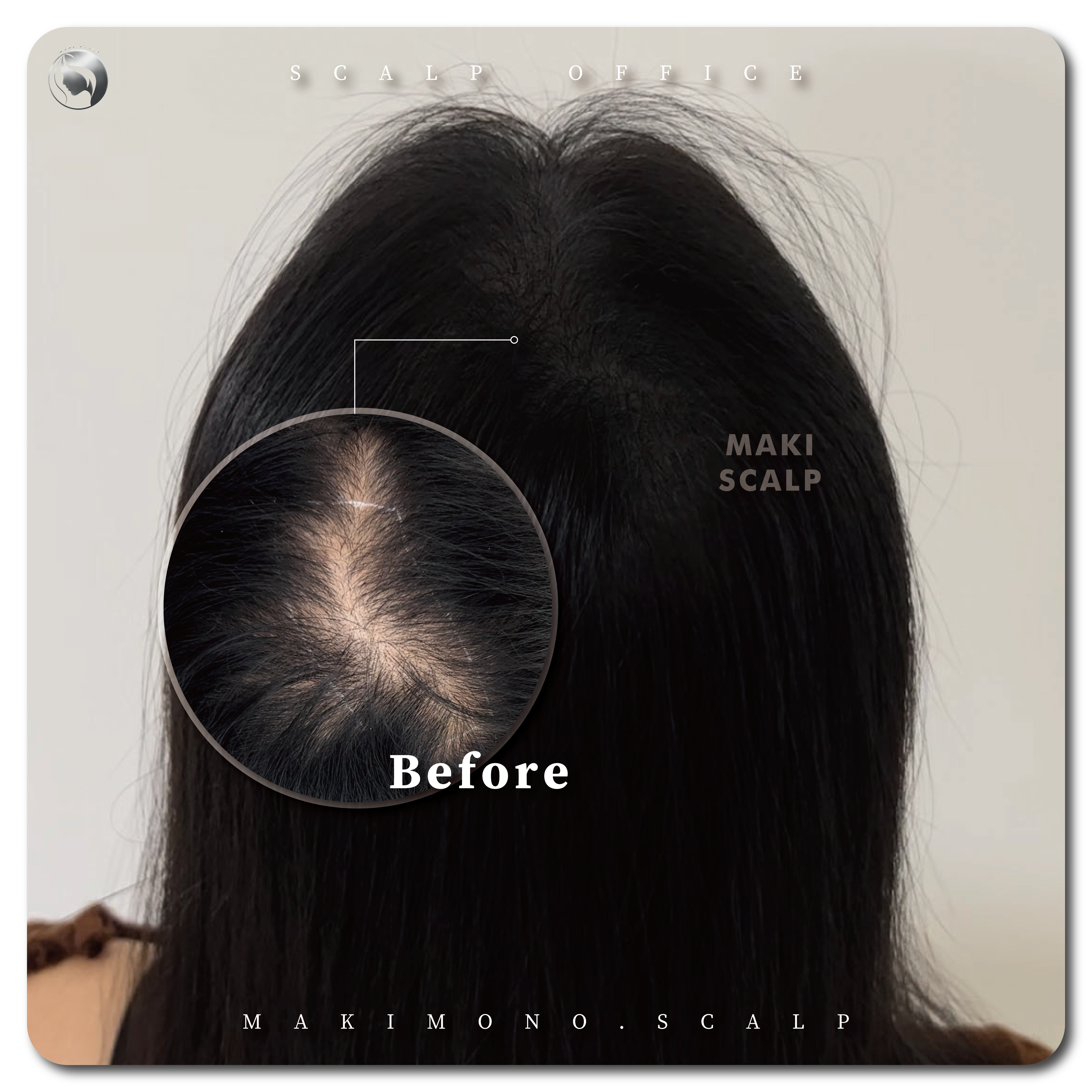 術後掉髮|吃藥落髮|毛囊不健全天生屬於細軟髮質的Z小姐,經歷手術掉髮以及吃藥落髮,導致頭頂嚴重禿了一大塊!透過循序漸進的填密技術,設計出最融合天生毛髮的自然比例,成功恢復茂密髮量。