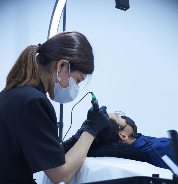 填密技術© 為客戶打造3D+視覺毛囊感,主打鞏固毛囊韌性、並且淨化頭皮老廢角質,療程搭配獨家賦活養髮液配方,在不損傷頭皮毛囊的操作下,更能夠維持SMP紋髮的最佳留色光澤。