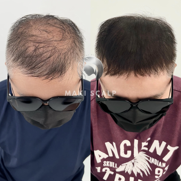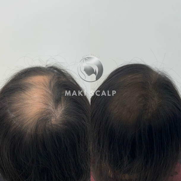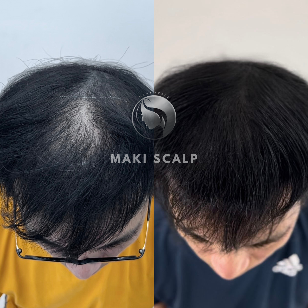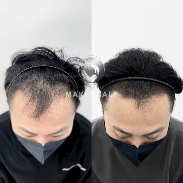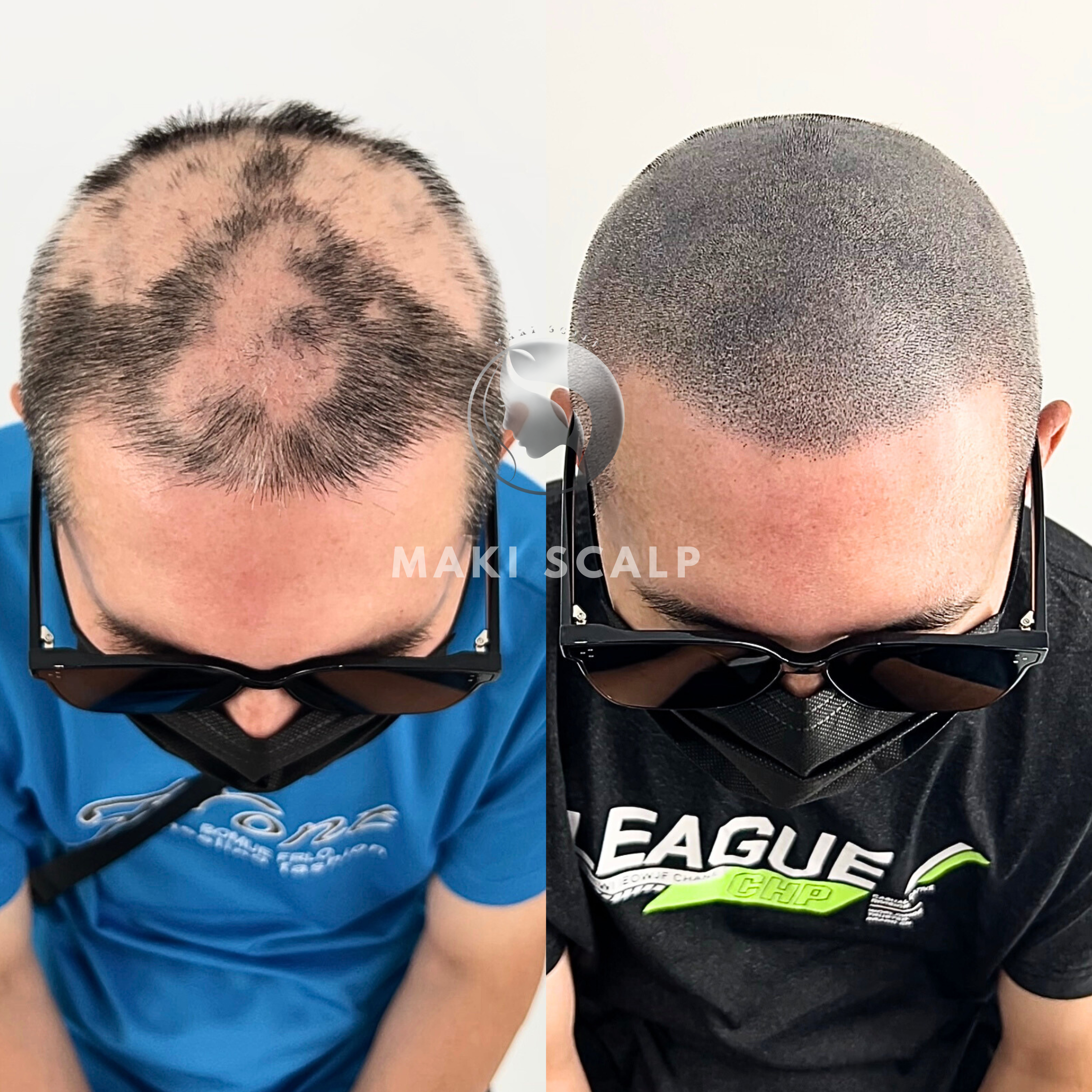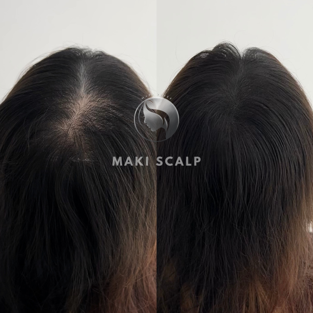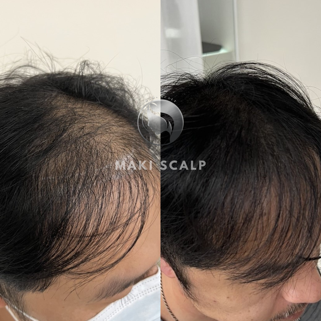術後掉髮|吃藥落髮|毛囊不健全天生屬於細軟髮質的Z小姐,經歷手術掉髮以及吃藥落髮,導致頭頂嚴重禿了一大塊!透過循序漸進的填密技術,設計出最融合天生毛髮的自然比例,成功恢復茂密髮量。