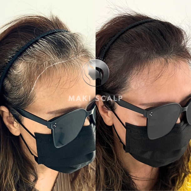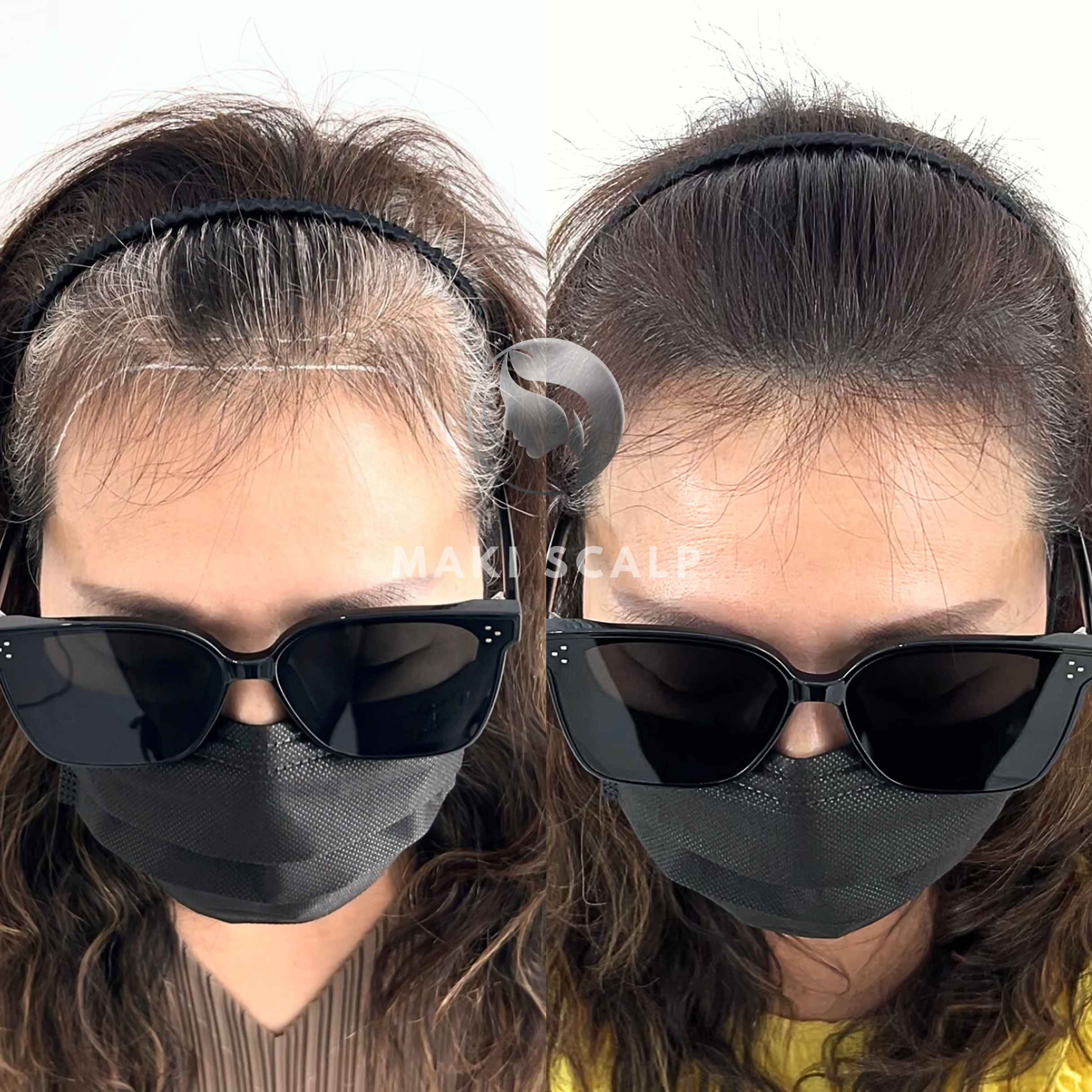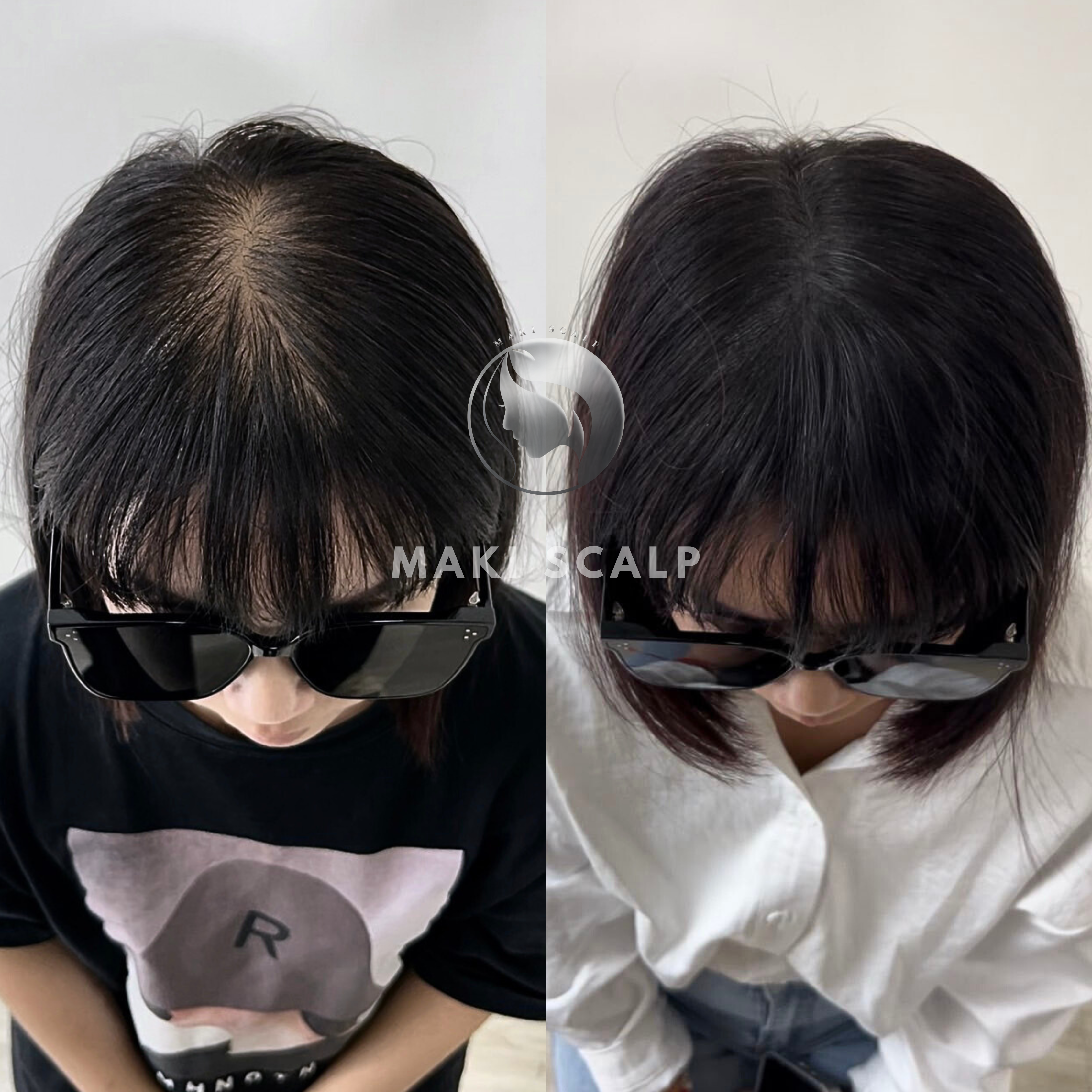 有效改善局部頭皮露白空姐的夢幻髮型,怎麼能有一絲不完美?即便擁有豐沛髮量,對於前額明顯露白處,依然感到不滿意。蒔物所針對Z小姐的需求,設計出專屬客製化填補,打造出自然漸層延伸髮際線,近看也不露出任何破綻!