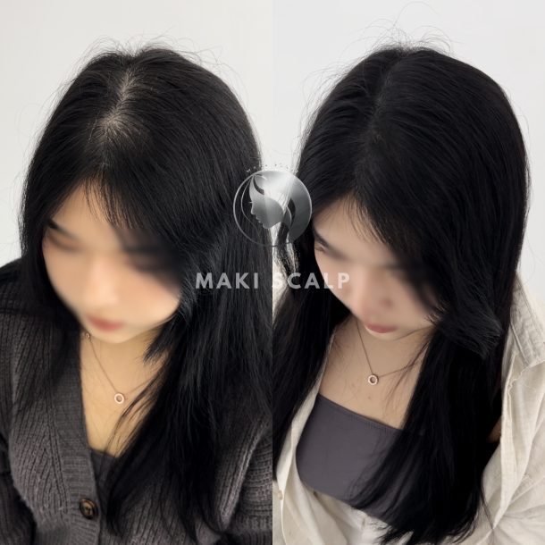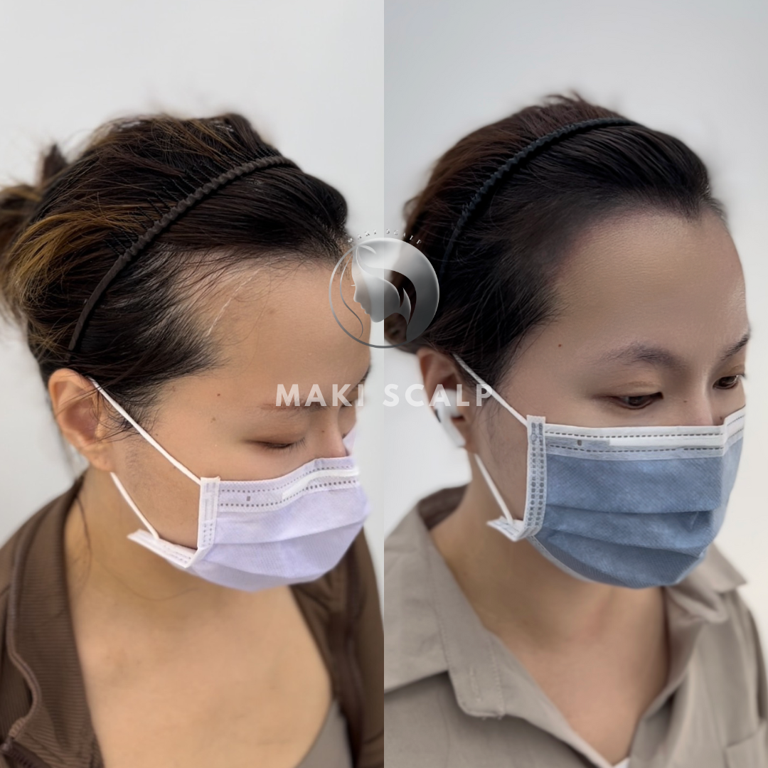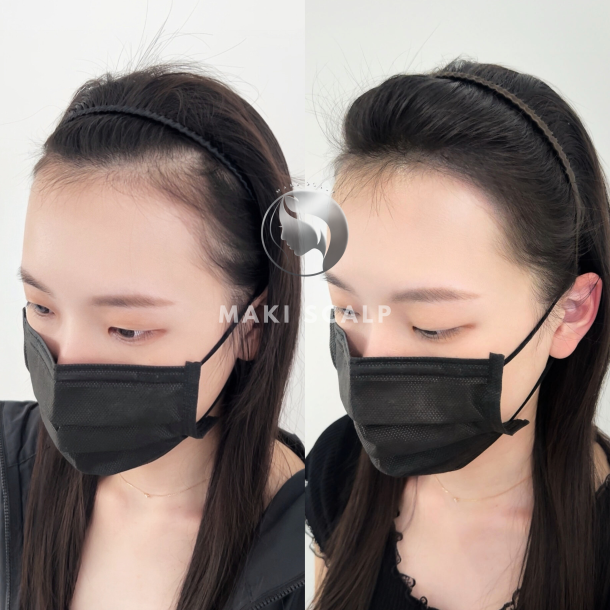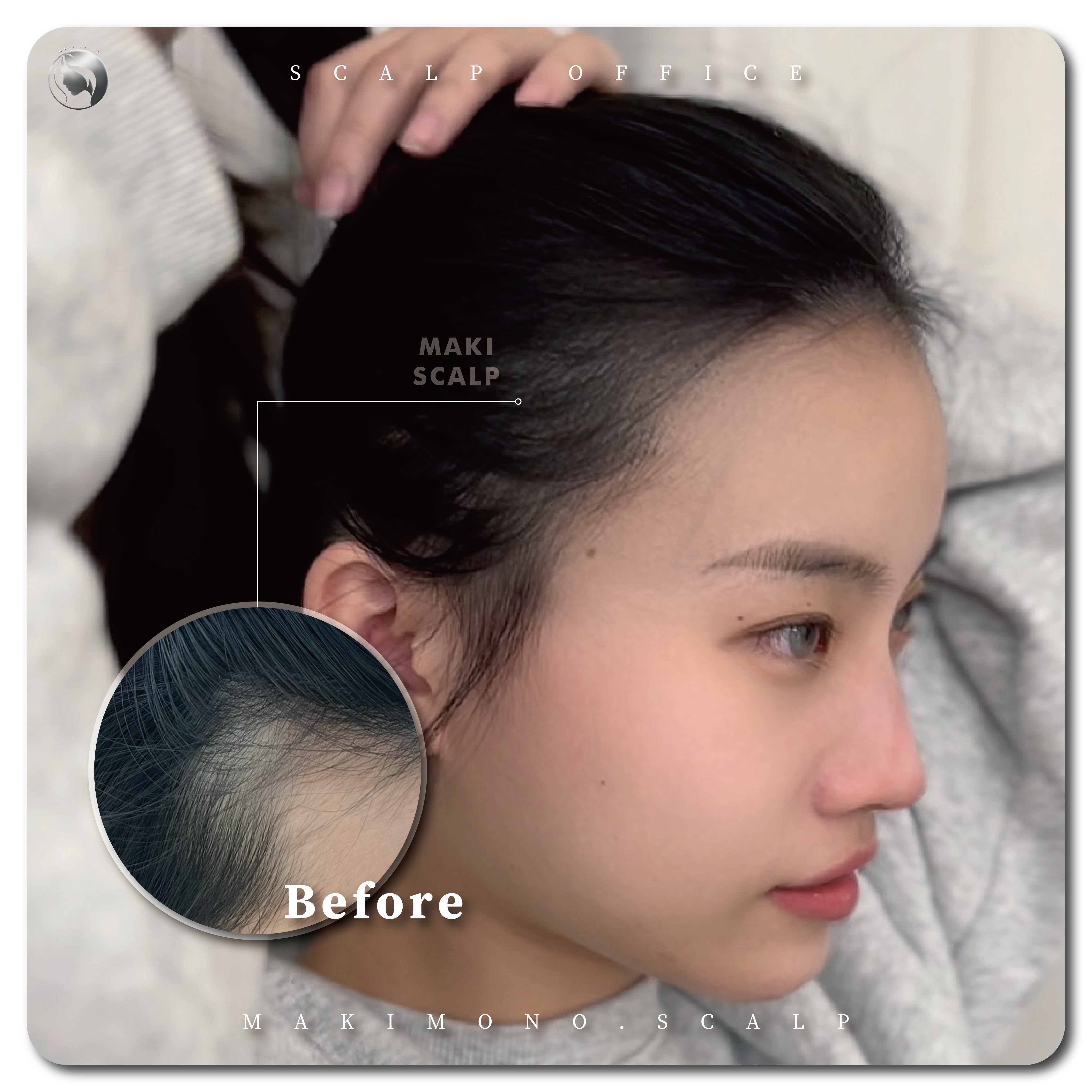 髮際線自然填補 清透柔霧感年僅二十初歲的T小姐,卻有髮際線空洞問題!從事婚紗業的她,經常需要綁起馬尾接待客戶。透過填密技術改善長久以來的困擾,現在可以駕馭任何髮型,再無死角。