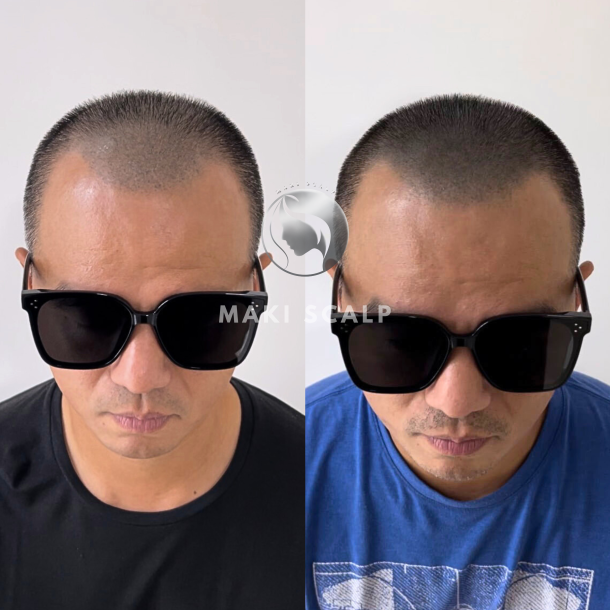 客製化設計 個性感十足髮際線於南投深山工作的Y先生,髮際線隨著年齡正悄悄後移,平時愛好運動的他習慣留著一頭個性短髮,本院設計出適合長髮也適合寸頭的髮際線,讓他無時無刻都能夠保持自信、活力充沛。